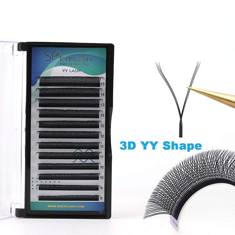 3D YY Lash Extensions feature a Y-shaped design with 6 individual lash extensions bonded together. This unique shape makes it very simple to create fans when grabbing with tweezers, with 3 tips on each side. No special skills are required, and you can instantly achieve a 6D cluster effect.