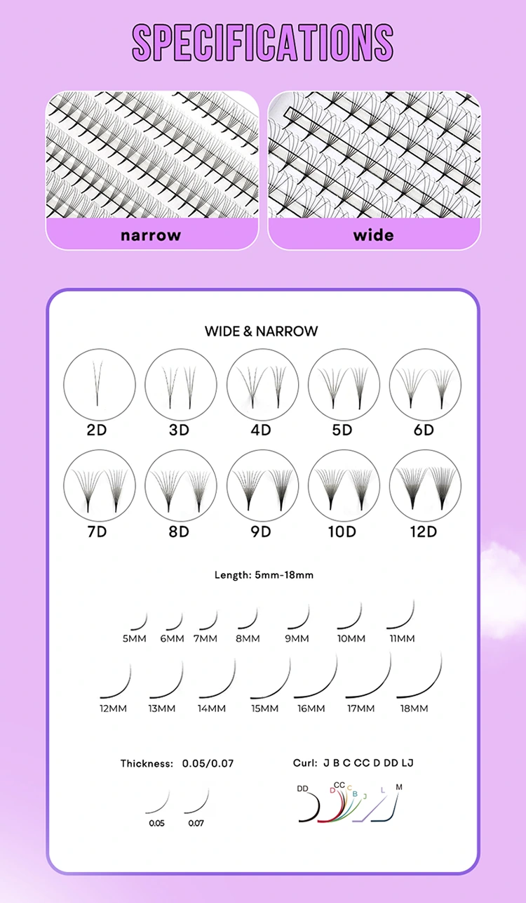 Cost Effectiveness: A box of loosepre made eyelash fans contains 500 fans (±2%), which is 5 times the quantity of regular eyelash trays, and each one costs only a few cents. Our 8-15mm eyelashes can be mixed in length in one set, so eyelash stylists do not need to prepare a single eyelash when serving customers, which can better save eyelash storage space.