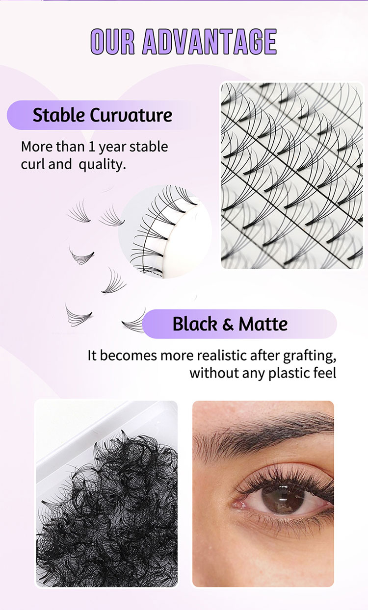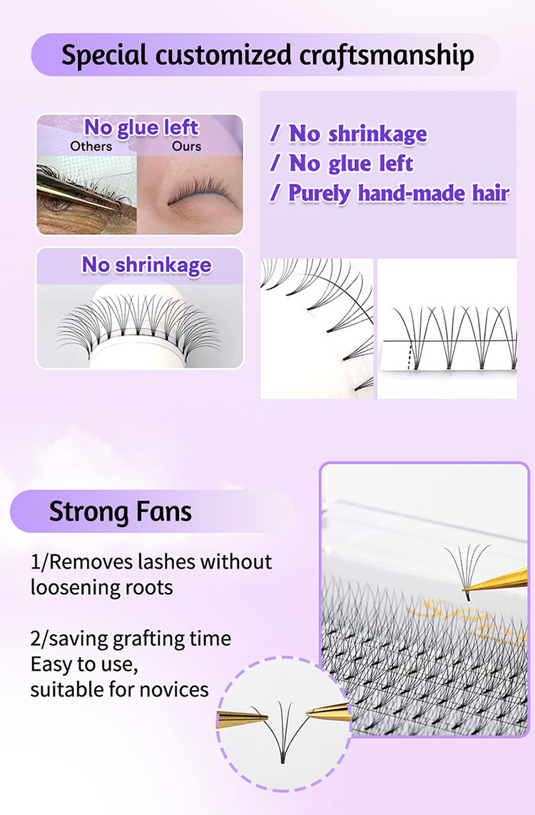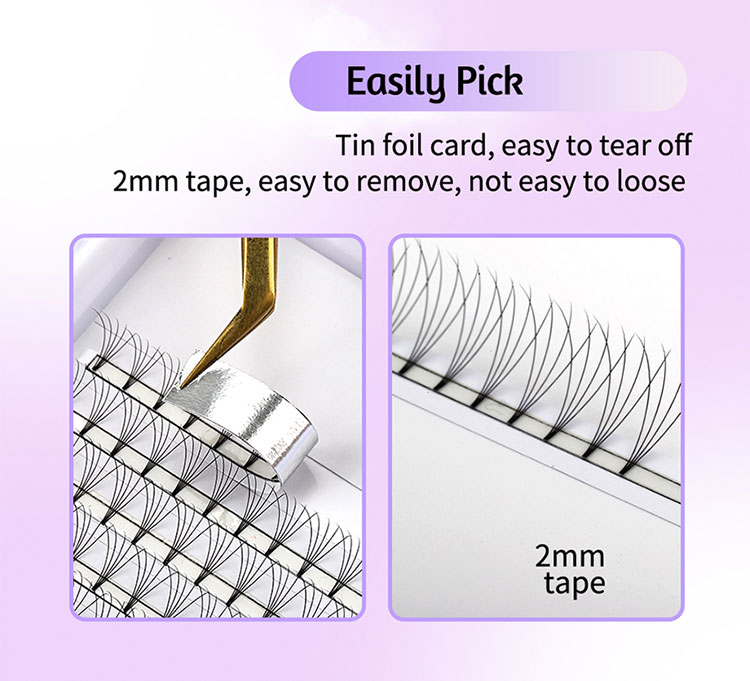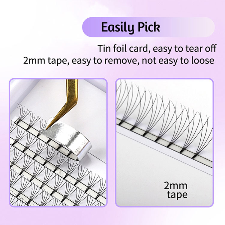 The Premade Fans 10D Short Stem Lashes by SP EYELASH are not only easy to handle but also incredibly durable. The strip peels off effortlessly from the lash tray, allowing the pre-made fans to be easily removed without falling apart. You can grip these lashes securely, ensuring a smooth application process. Moreover, depending on your needs, grafting from 3D to 10D premade fans each time can save you a significant amount of time, making your work more efficient.